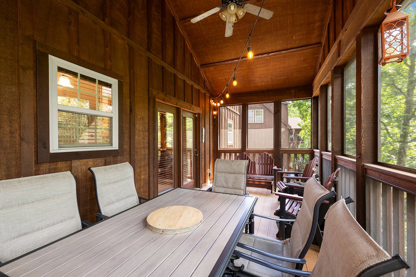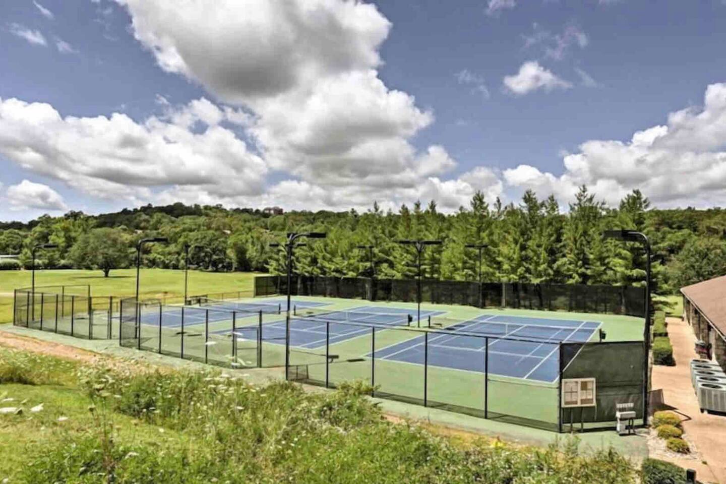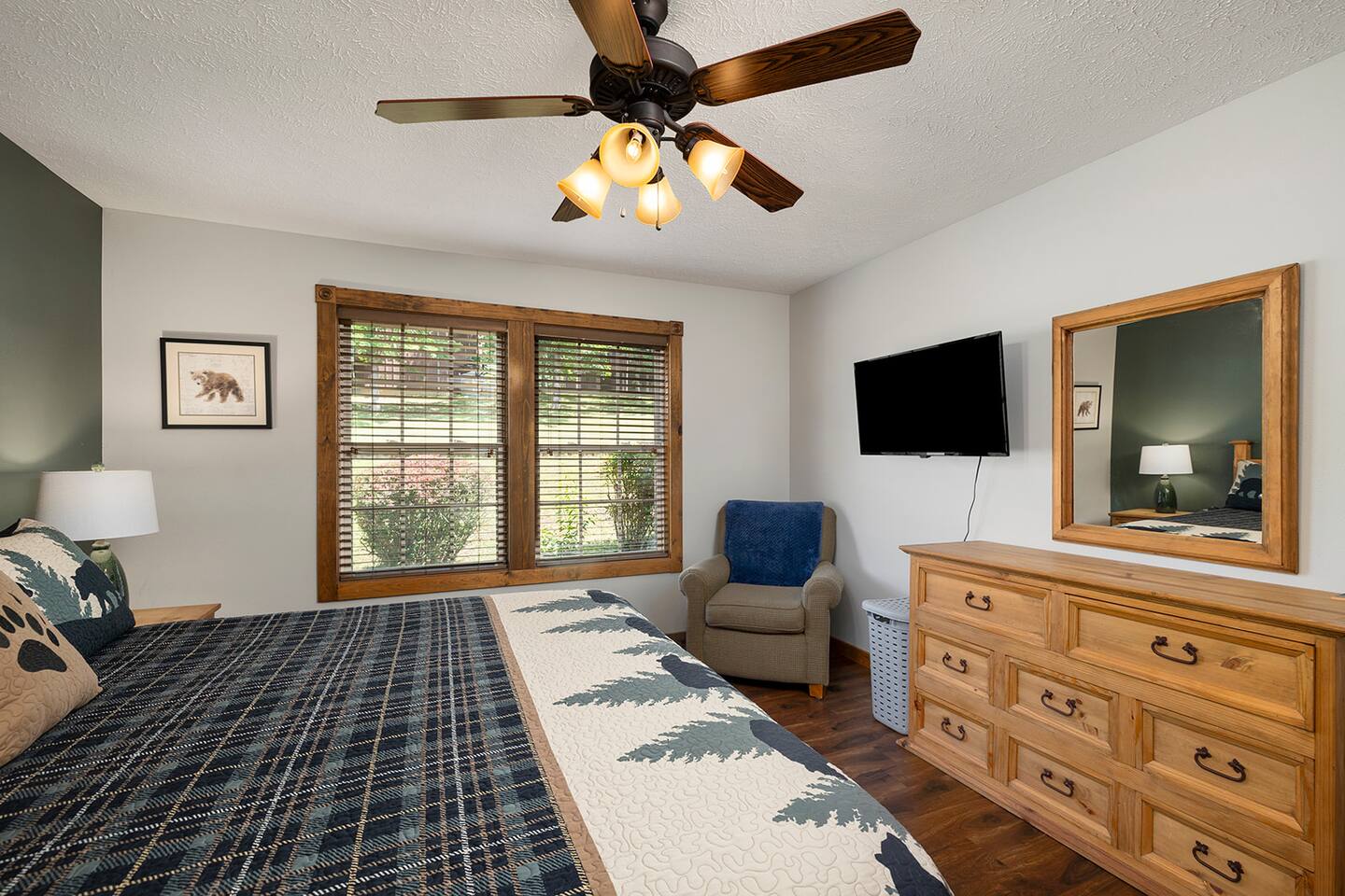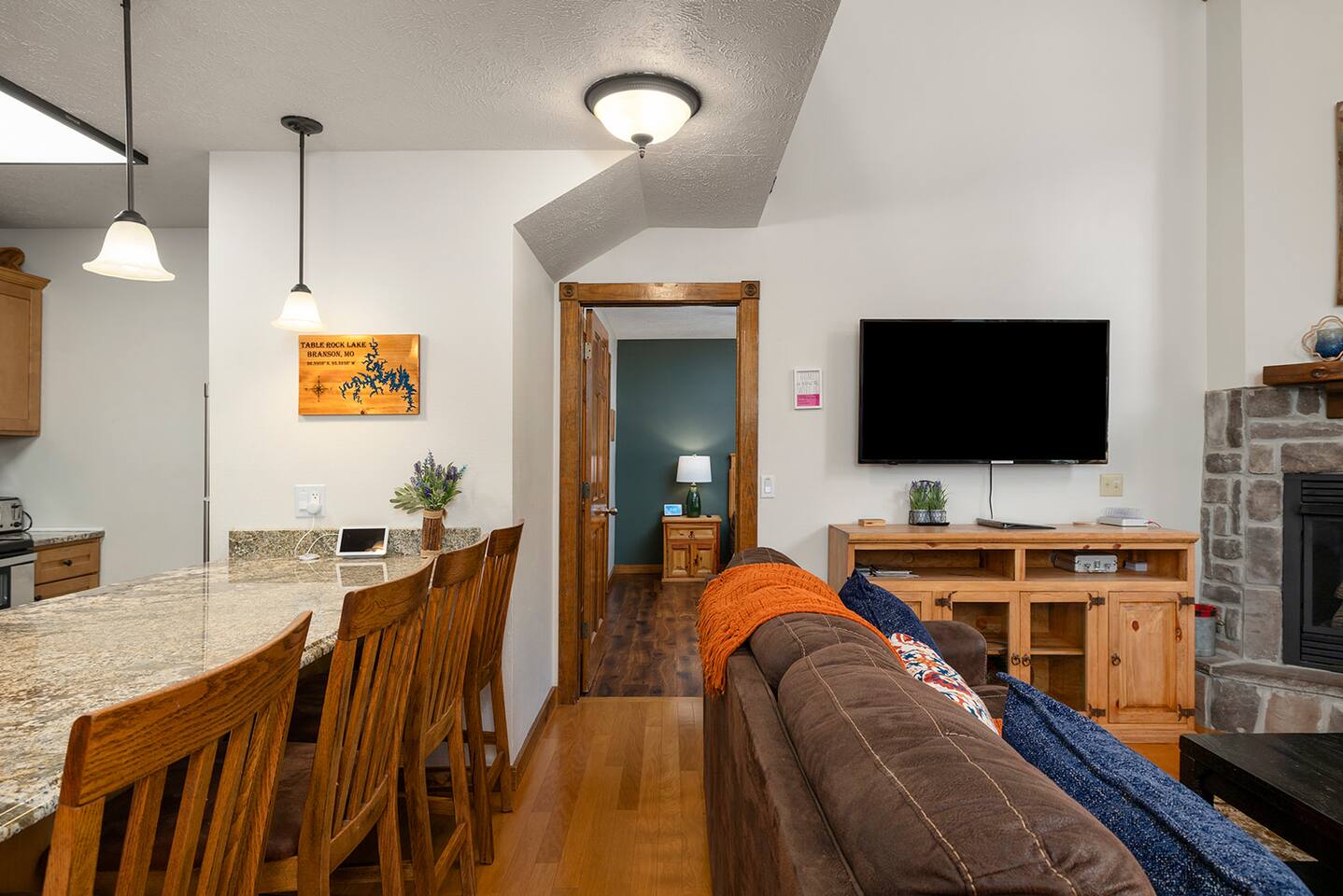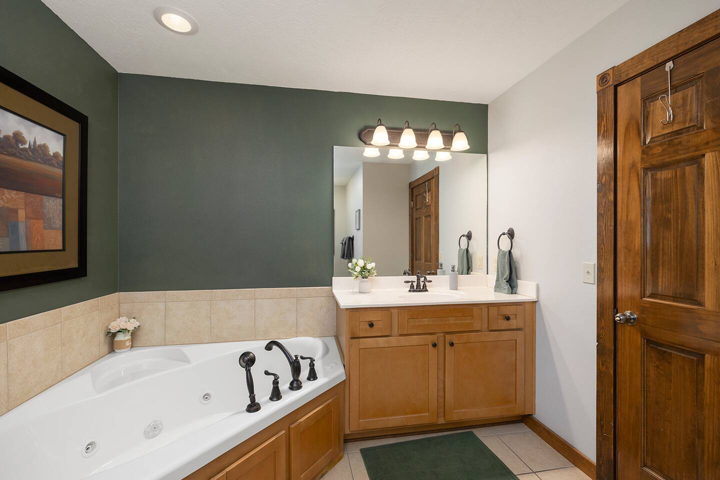 In addition to the numerous amenities that Stonebridge Resort has to offer, you are just minutes away from Silver Dollar City, Table Rock Lake, and all the attractions Branson has to offer. Upon arrival you will enter through the covered archway and into the gated community. From there you will drive past the clubhouse through the rolling hills and gorgeous 18-hole golf course, and you will see the catch and release lake and playground and pool area as you near the lodge. Our lodge offers an open concept living experience with four large master suites, each having its own private bathroom featuring showers and whirlpool tubs. Each spacious bedroom has a king size bed, a flat screen TV with cable and accommodations for your personal items. The heart of the lodge is the cozy living room including a family room with vaulted ceilings, dining area and fully equipped kitchen. You can enjoy time with your family watching the flat screen TV, playing games or reading a book by the cozy fireplace. To enjoy the outdoors, the dining area opens to the oversized screened-in deck which is a great place to enjoy your morning coffee or evening meals. Of course, the lodge provides free high speed wi-fi for all your internet needs. The Stonebridge Resort includes many amenities for our guests such as multiple swimming pools, playgrounds, walking trails and a catch and release fishing lake (no license required). If you venture up to the Ledgestone Clubhouse, you also find another swimming pool, tennis courts, a workout facility, a fully equipped golf pro shop and the clubhouse restaurant. We hope you enjoy your stay at our lodge, where you will surely make lasting memories with your friends and family. We are here to assist in any way possible and hope to see you again on your next visit to Branson.