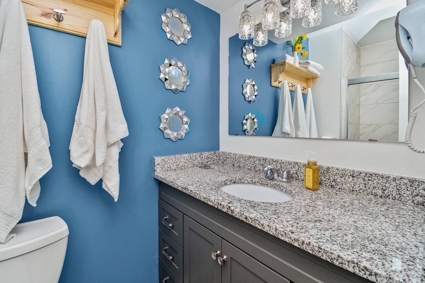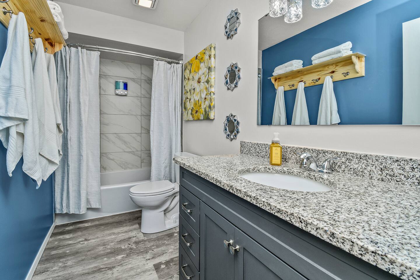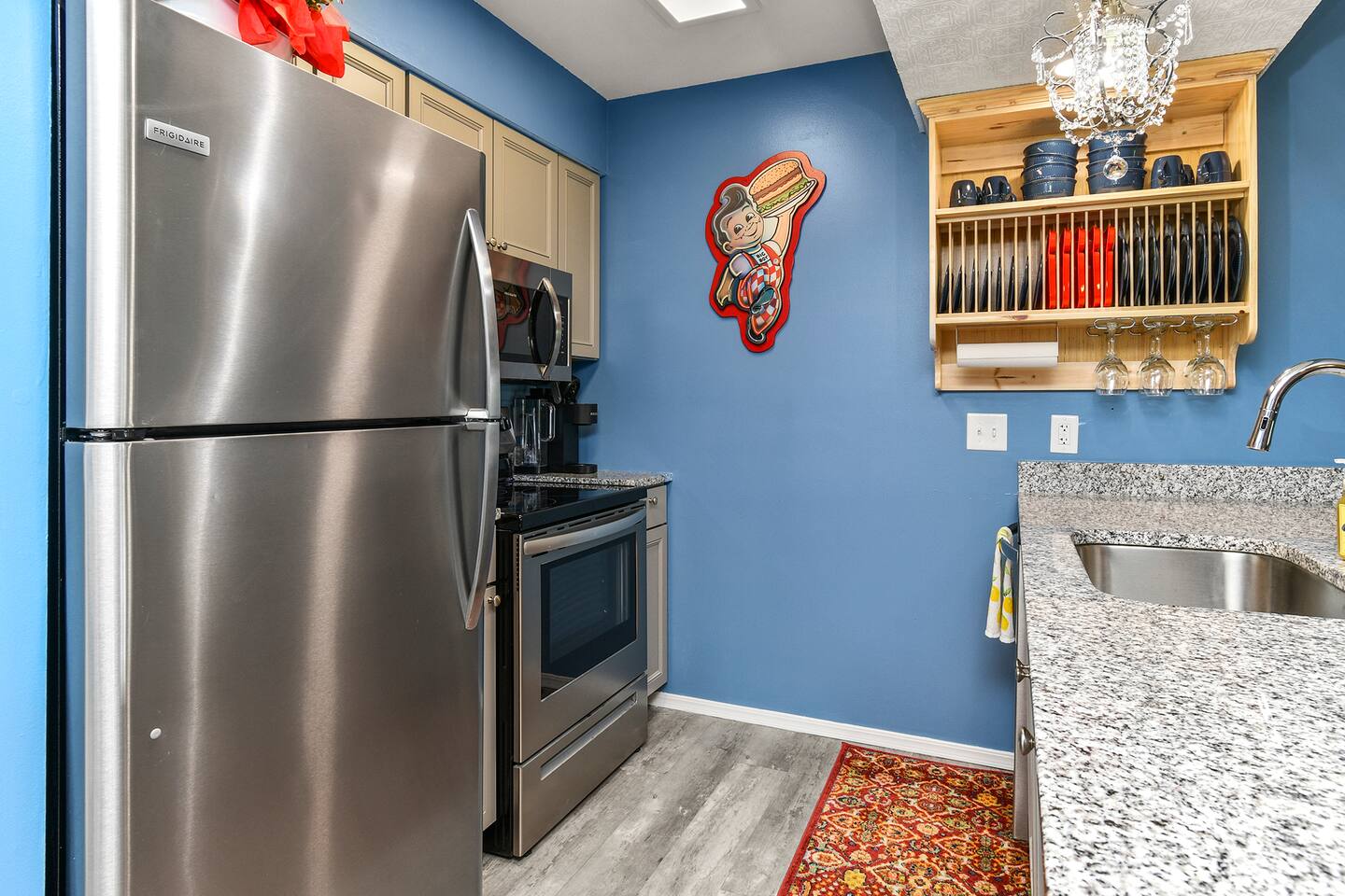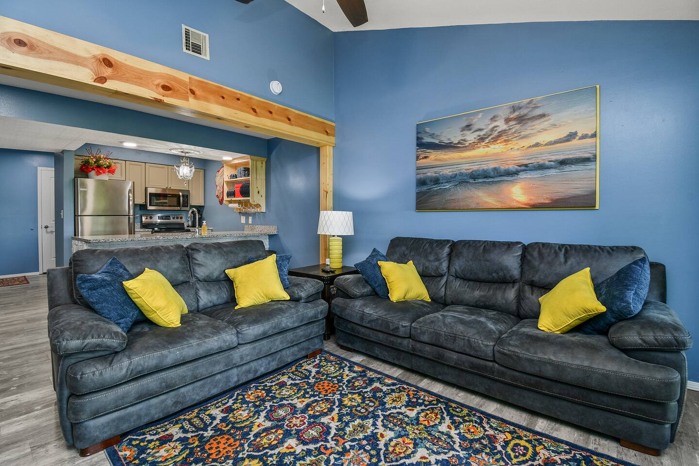 Our Colorful Fun-Filled condo has everything you could imagine. Two full bedrooms with the Master bedroom having 1 king bed, the Guest bedroom has 1 queen bed, and the living room has a full sized sofa sleeper. The updated kitchen features all newer stainless steel appliances including a dishwasher, fully stocked with dishes, spices, pots & pans etc. Even the kiddos have their own dining ware. Both bathrooms are fully stocked with shampoo, conditioner & refreshing body wash. Wall mounted blow dryers are new and both bathroom have been recently remodeled. We have a new Maytag Commercial washer & dryer and a new HVAC with Nest thermostat. Enjoy 2 full size decks. Whether you want to sit and relax on the front or back deck, they are full sized and ready for you to relax. The amenities are endless at Notch Estates and our location is SUPREME! We are just 5 minutes to SDC and 10 minutes to the ever so popular Table Rock Lake.