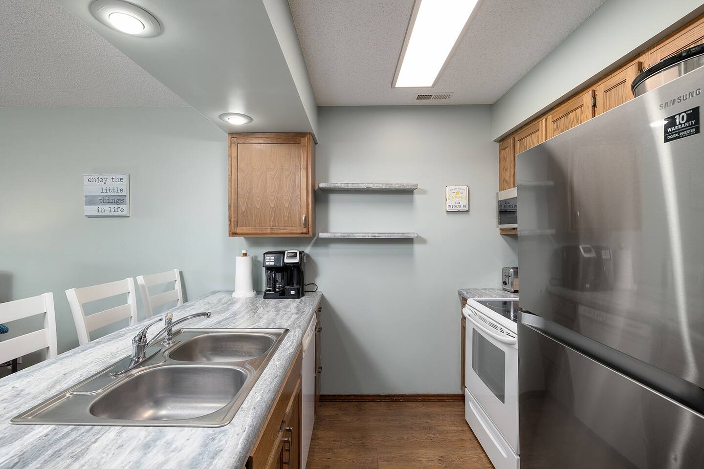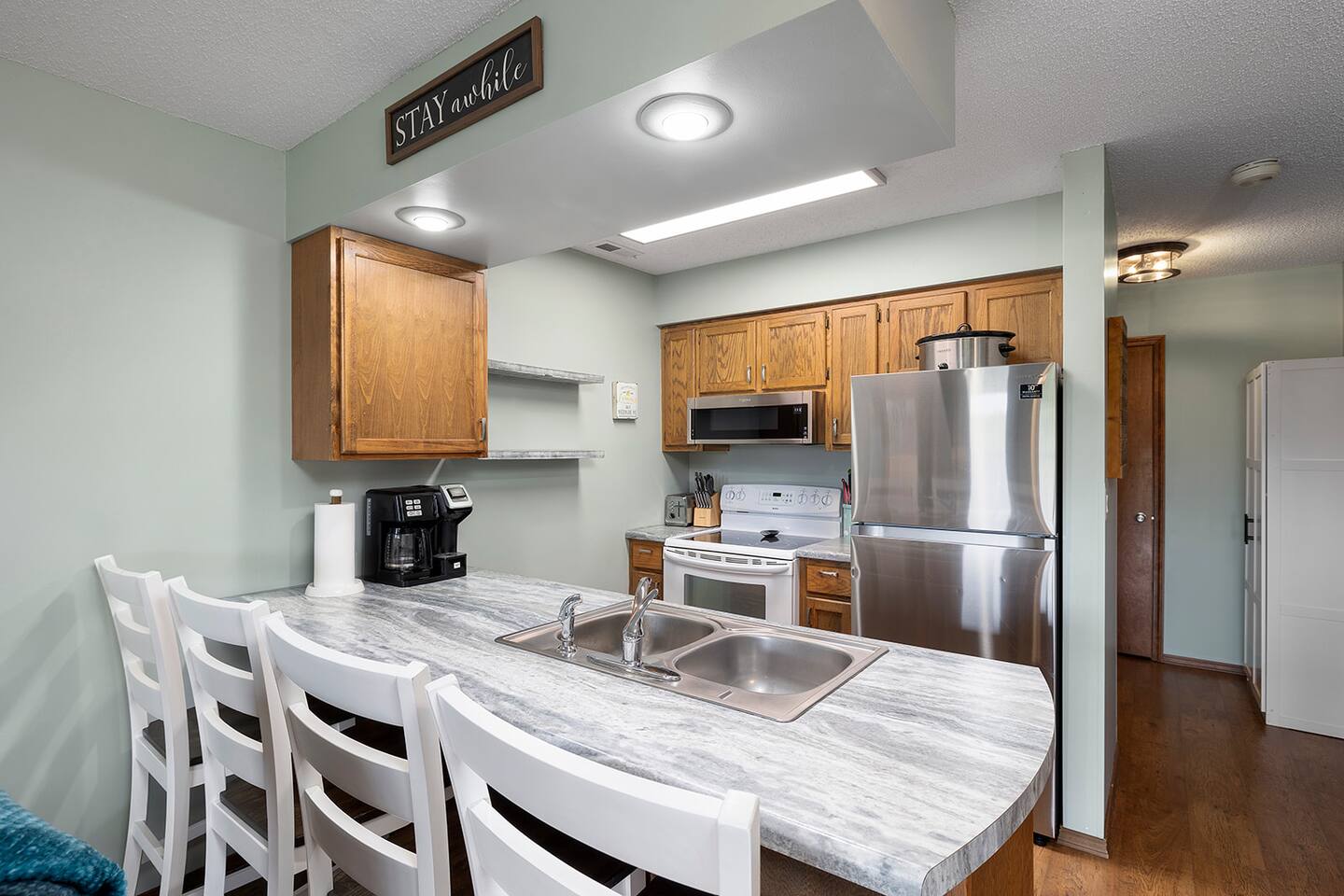 We provide a handful of board and card games to keep the kiddos entertained. There is a pack and play in the unit. The kitchen is stocked with pots and pans, plates and silverware and the basic necessities for cooking. We do not provide coffee but there is a full size coffee pot that takes pods or ground coffee for guests to use. Guests should plan to bring beach towels if they intend to use the swimming pools.