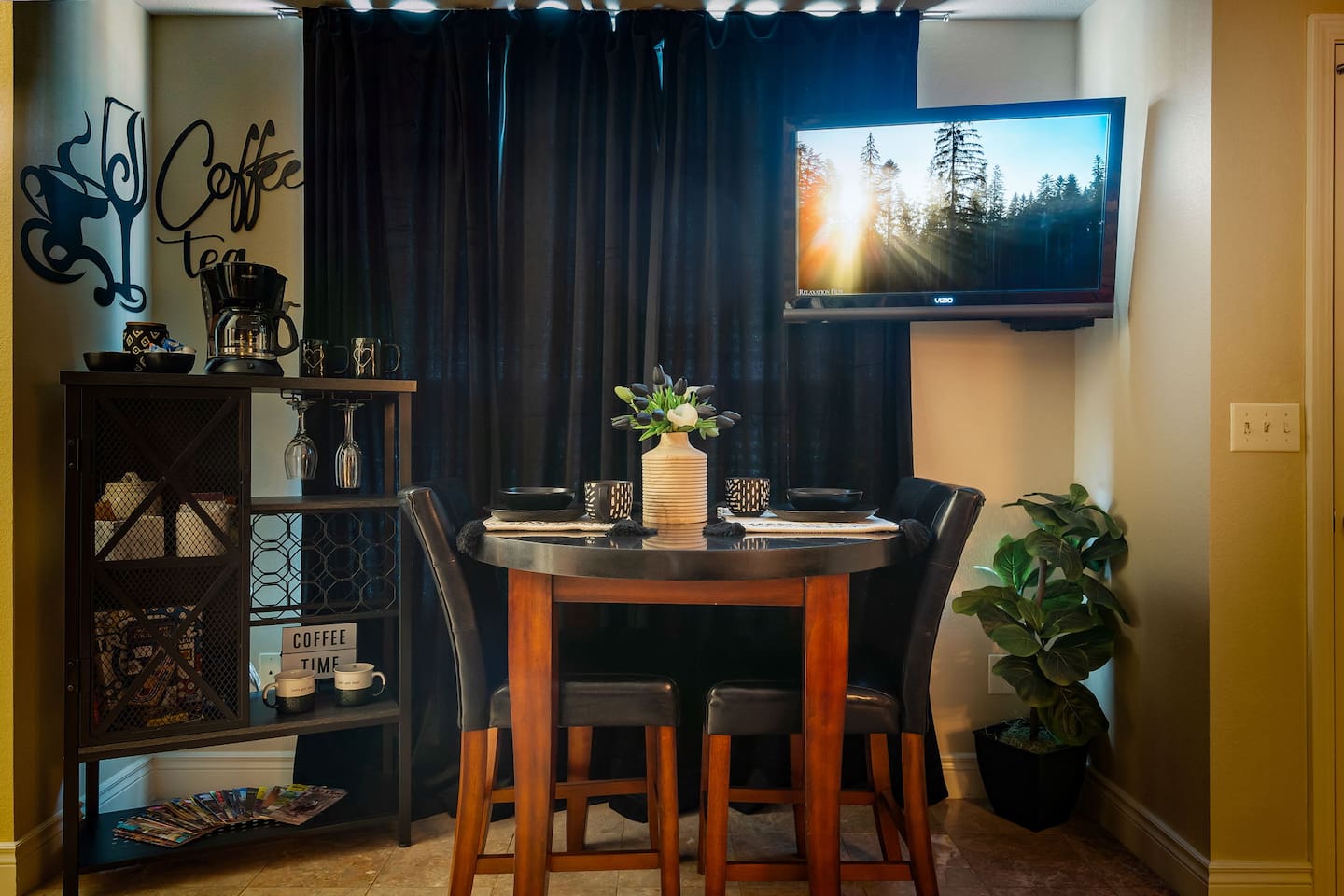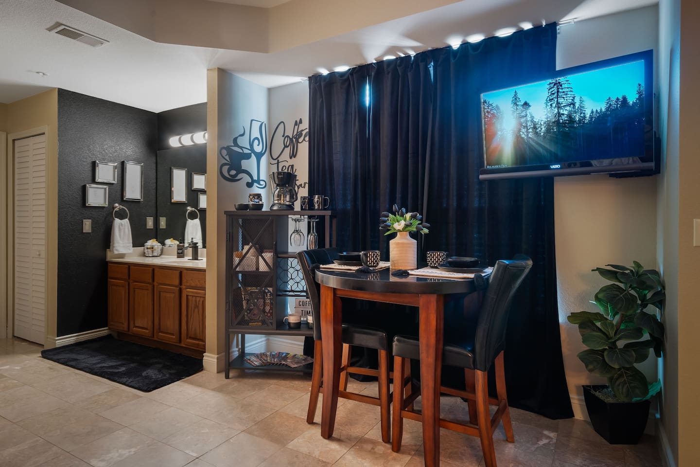 The unit was fantastic, well decorated and a few little holiday decorations as well. My wife and I were very pleased with the unit. I felt like there was a lot of thought put into the decor. Lisa has a coffee maker with many coffee pods to choose from as well as creamers and other condiments in the kitchenette. The unit was very clean and we didn't hear any neighbors.
