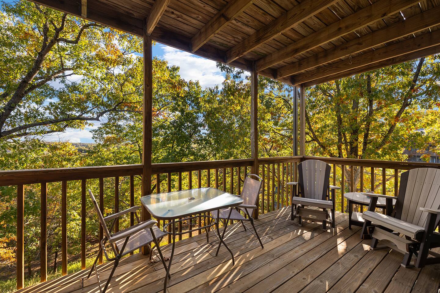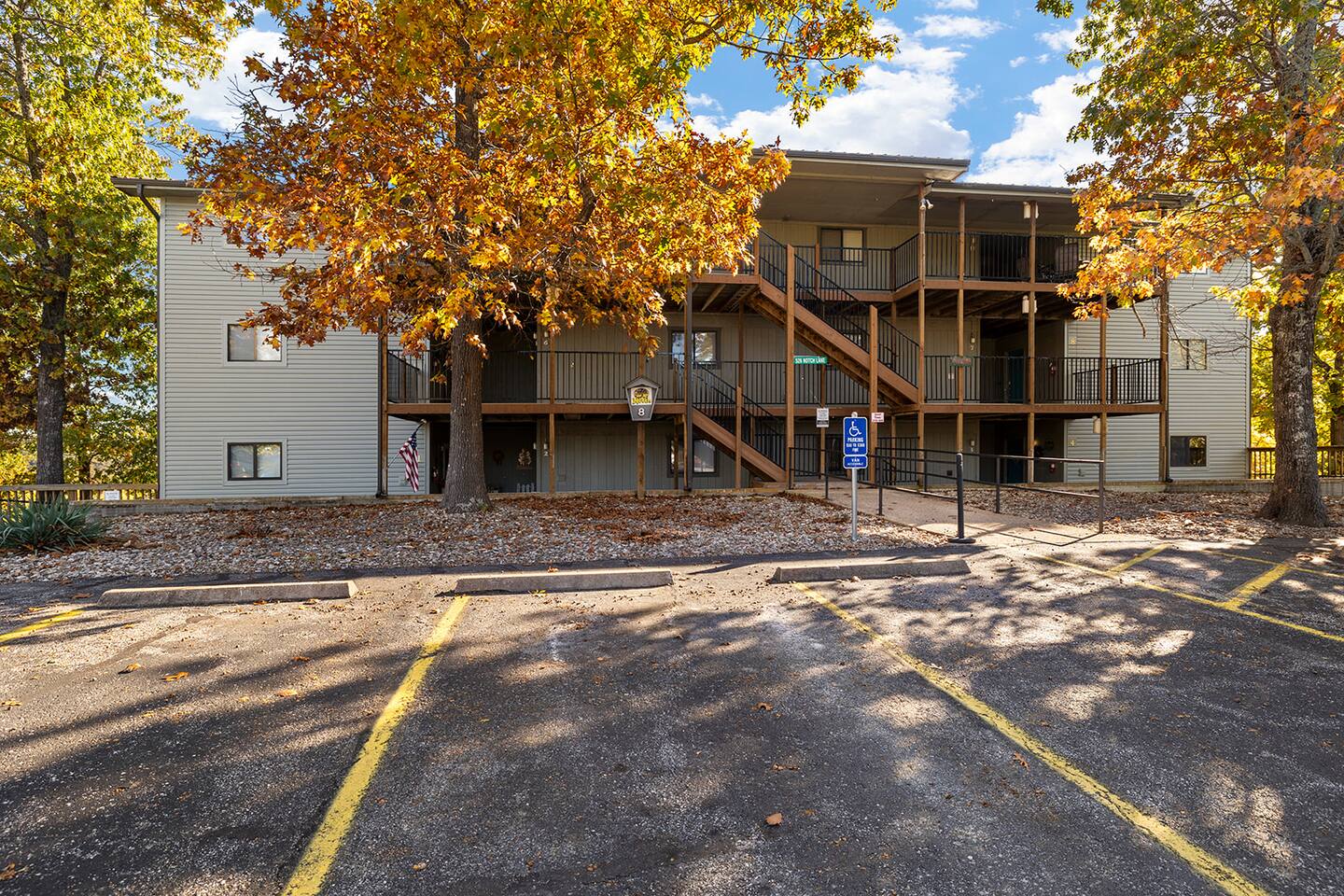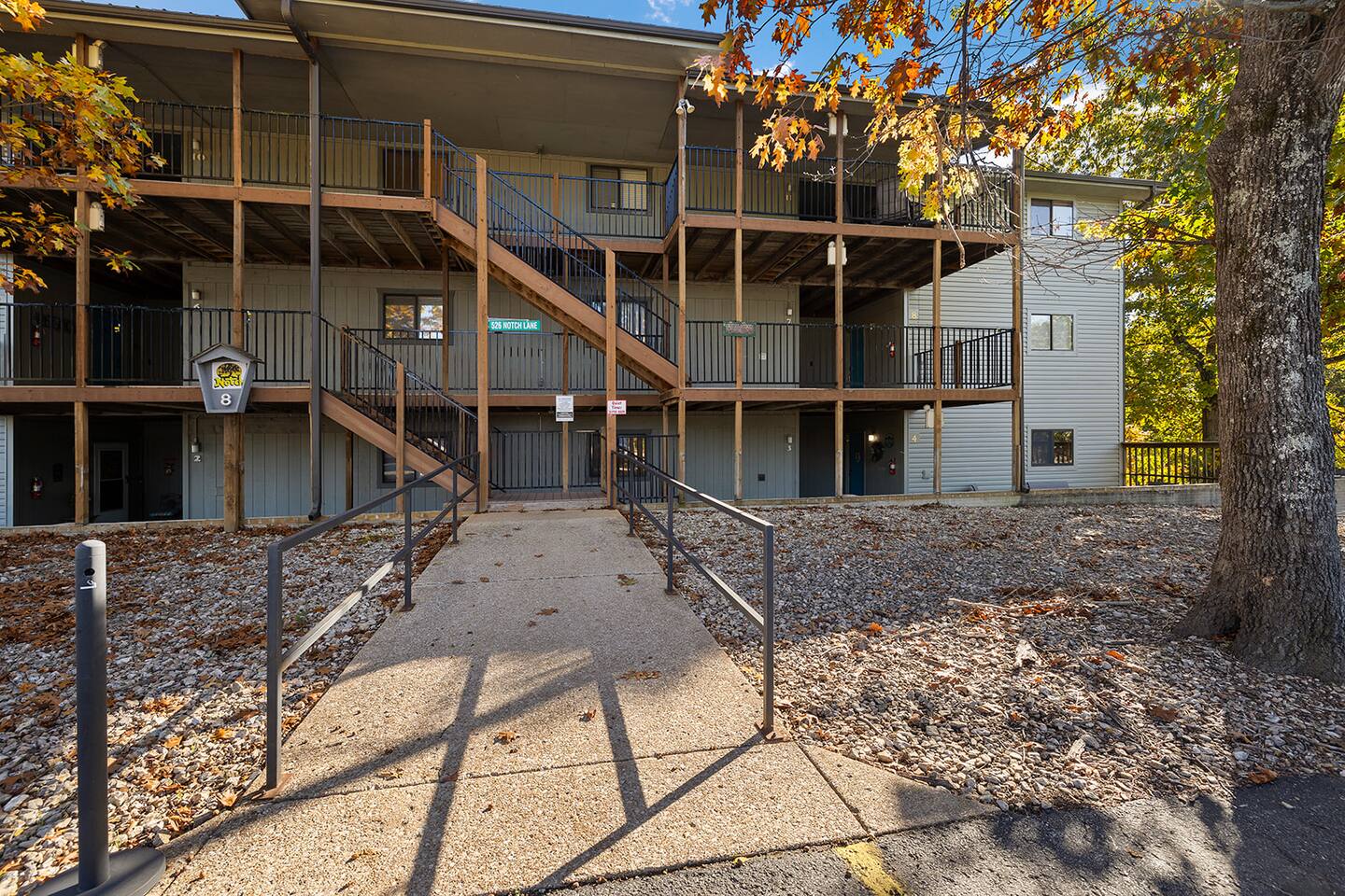 As soon as you step inside, you will be blown away by this nicely renovated and cozy Notch Estates condo, with all the comforts of home. The large deck offers private beautiful scenery with nothing but the woods behind you. Get away from the traffic and enjoy your stay with us. Our hope is that you create lasting memories with your family as we do with ours. SLEEPING ARRANGEMENTS (sleeps 8 comfortably) - Bedroom #1 includes a king size bed, end tables, a flat screen TV, ceiling fan, private bath, private access to deck - Bedroom #2 includes a full size bed, bunk bed with 2 twins, a flat screen TV, and ceiling fan. - Living Room offers an open floor plan to include a queen sizepull out couch and a flat screen TV *Feel free to bring a blow up mattress KITCHEN Kitchen offers a breakfast bar that seats 3, is equipped with everything you will need including a glass stove top with oven, full-sized refrigerator, coffee maker, microwave, and all cooking utensils. Separate dining area seats an additional 4 guests as well. In the warm months, you can enjoy your meal on the deck right off the living area. LOCATION - Silver Dollar City (2.8 miles) - The Branson Strip (6 miles) - Tanger Outlet Mall (8 miles) - Branson Landing (11 miles); - Showboat Branson Belle (9.7 miles) - Dolly Parton's Stampede (8.5 miles) - White Water (6 miles) - Indian Point Boat launch (5 miles) PARKING Free parking located directly in front of the building BOAT STORAGE Free boat storage located at the front of the complex. COMPLEX AMENITIES The complex offers - Two seasonal outdoor swimming pools. One of the pools islocated next door to this unit. - Nature hiking trails - Outdoor patio furniture - Catch and release pond - BBQ area with charcoal grills - Basketball Cort - Covered picnic tables and pavilion - Two playgrounds - Free boat/trailer parking *Permit required if more than 7 days.
