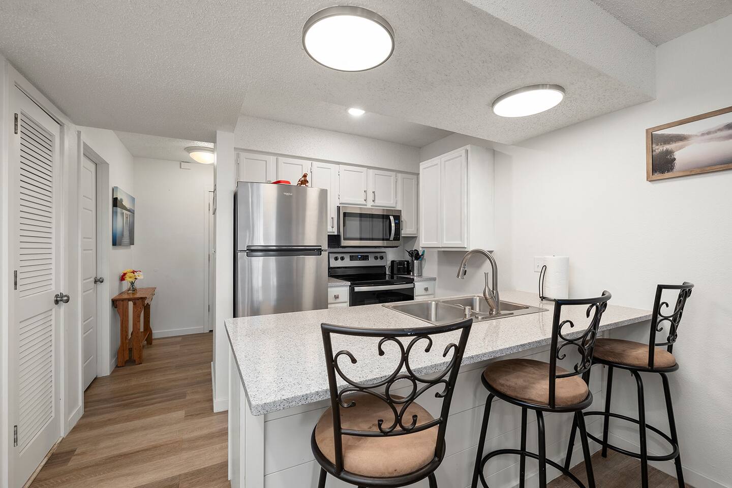 Welcome to Serenity Cove, a haven of peace and comfort where every detail has been thoughtfully curated to create a cozy, inviting atmosphere. This tranquil retreat combines modern elegance with warm, welcoming touches, offering a perfect escape from the bustle of daily life. Whether you’re unwinding with a good book on the back deck, spending time with family, or simply soaking in the serene ambiance, Serenity Cove is a place where comfort meets bliss. This condo has one flight of stairs.