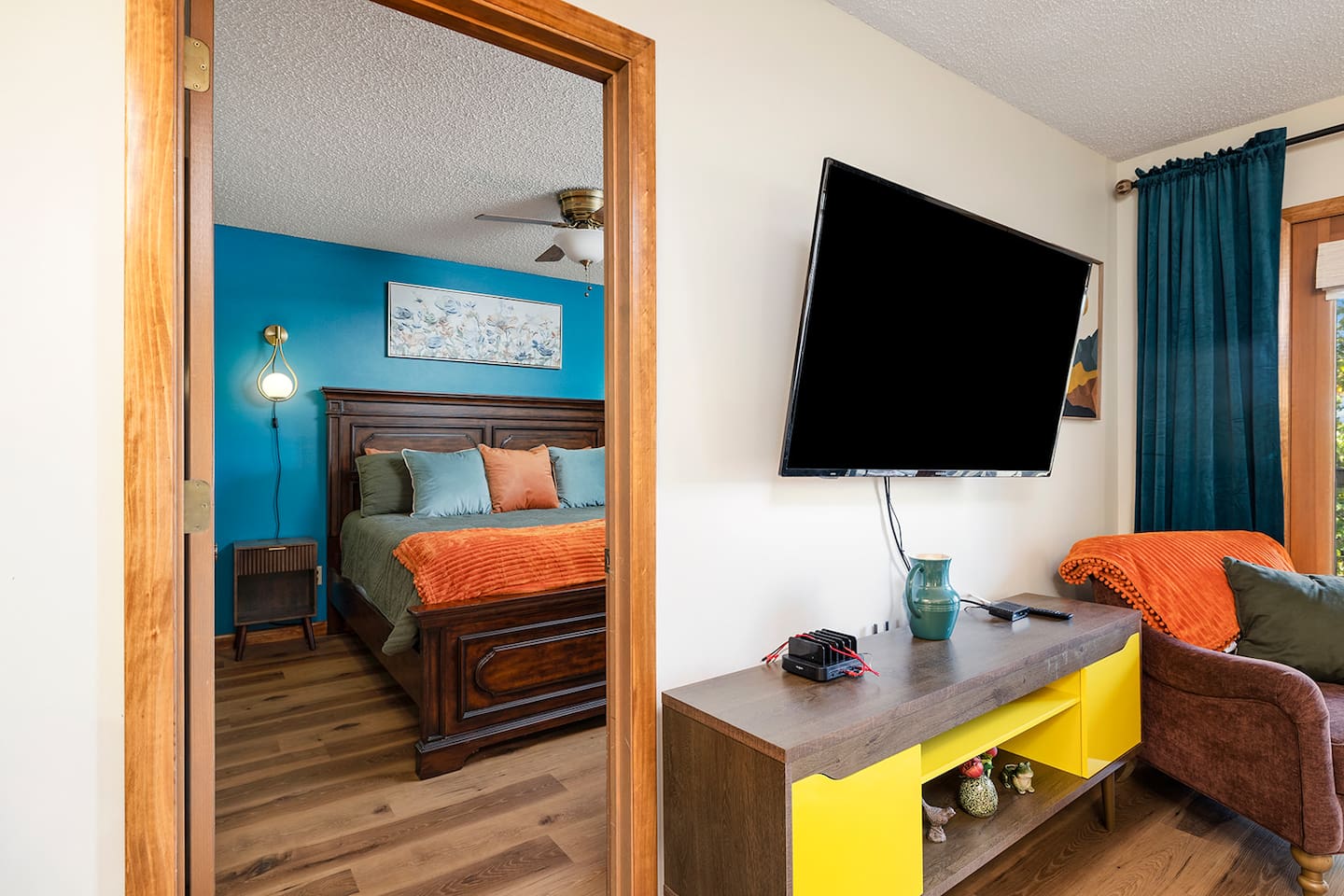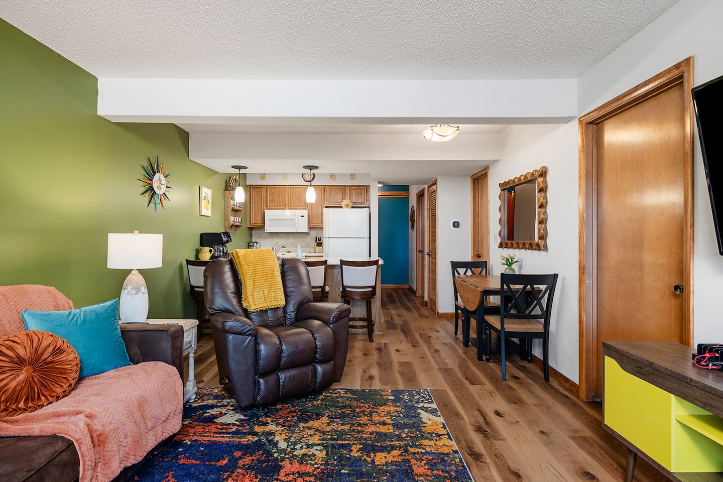 Pack your bags and get ready for a groovy good time. This retro-inspired condo is the perfect place to kick back, relax, and make memories with the whole family. Think bold colors, throwback style, and a cozy vibe that feels like a nostalgic getaway but with all the modern comforts you need. Even better, this pad is only getting cooler. In September 2025, we’re rolling out fresh LVP flooring and a splash of new paint to keep the retro charm shining bright. New polaroids dropping soon!