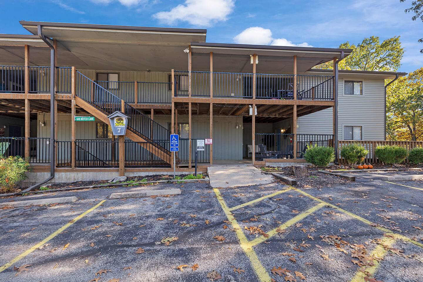 The unit doesn’t have a dishwasher or washer/dryer inside, but no worries. There is a laundry facility just across the street at Notch Estates.